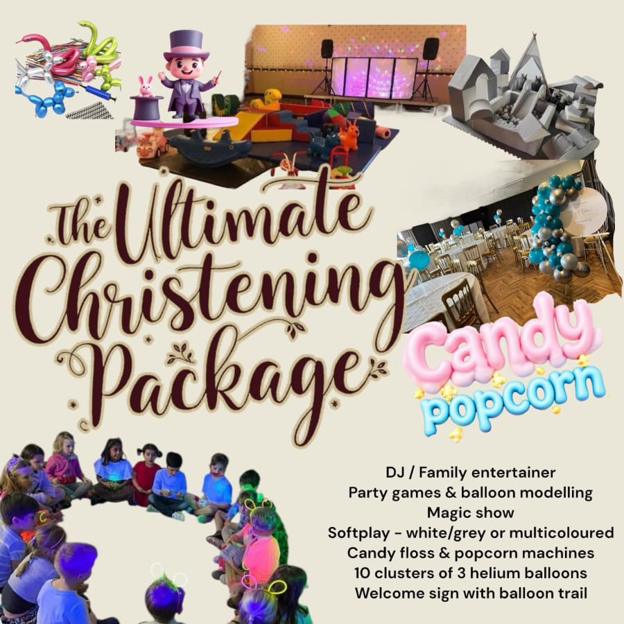 Make your child's christening an unforgettable event with our Ultimate Christening Package. Designed to add a touch of magic and excitement, this package offers entertainment options that will delight both kids and adults alike. Perfect for parents seeking creative and engaging christening ideas, our package ensures a memorable day for you and your guests.