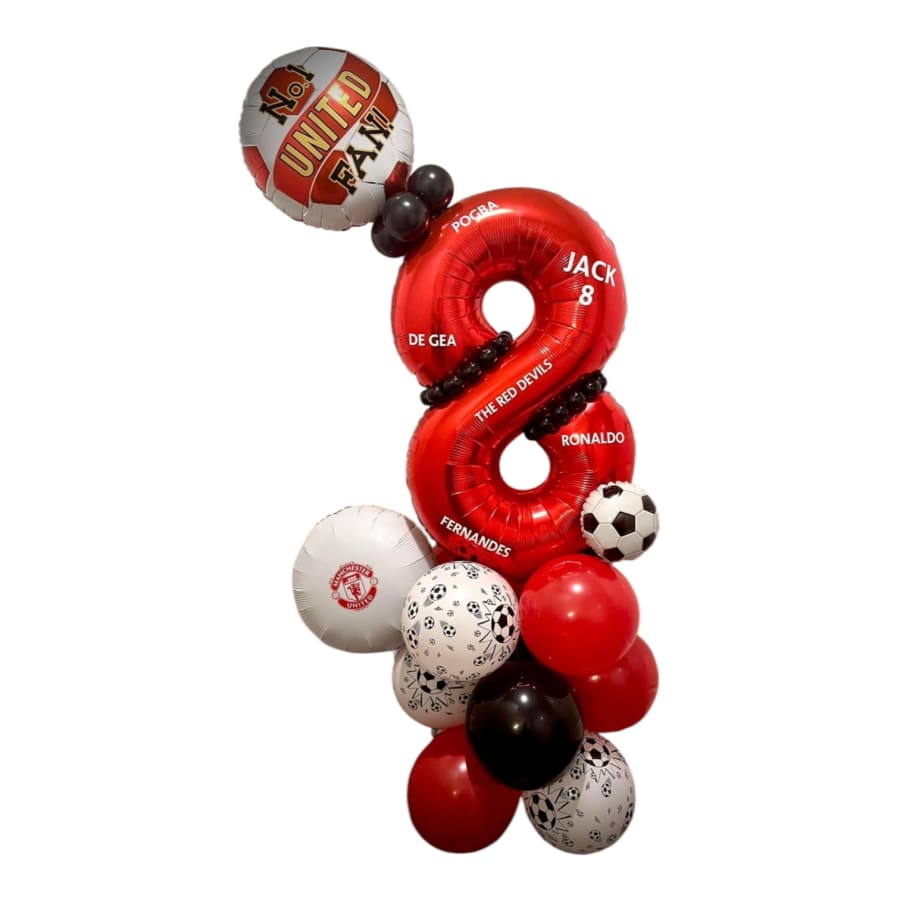 Are you a die-hard Manchester United fan or looking to surprise one? Our stunning Man Utd balloon creation is the perfect way to celebrate the love for the Red Devils. Whether it's a birthday party, a thrilling match day, or any special occasion, these balloons are sure to bring a smile to every Manchester United enthusiast!