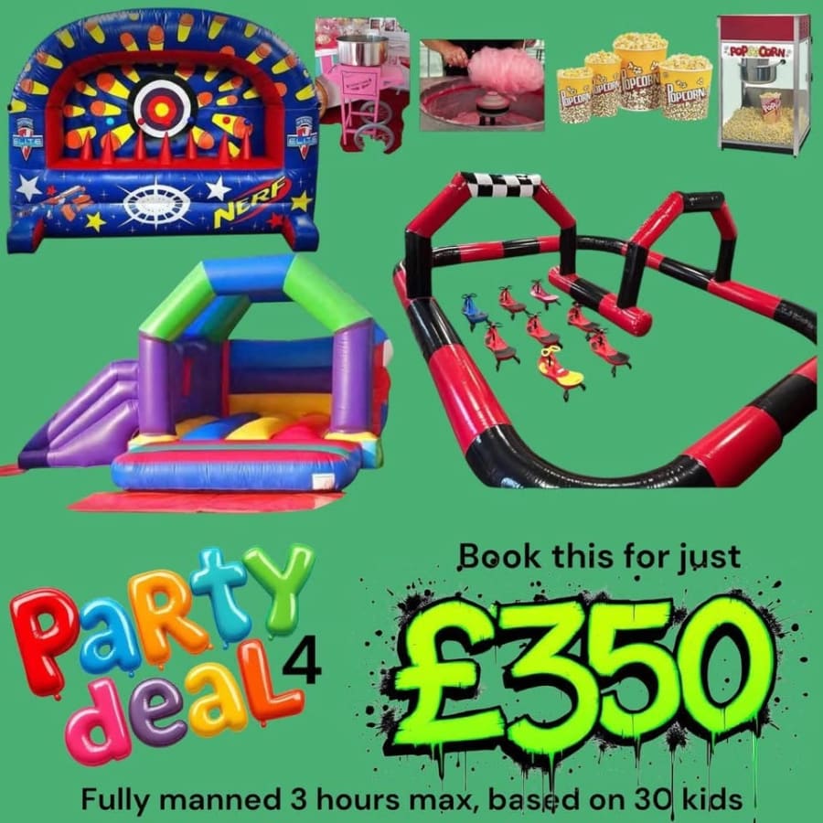 This package has been carefully curated to deliver exceptional children’s entertainment for any occasion. With options suitable for a wide age range and safe, quality equipment, you can relax knowing that your event will be filled with laughter, excitement, and unforgettable moments. Whether you’re planning a small gathering or a large celebration, Party Deal 4 ensures every child is engaged and entertained from start to finish. 🌟